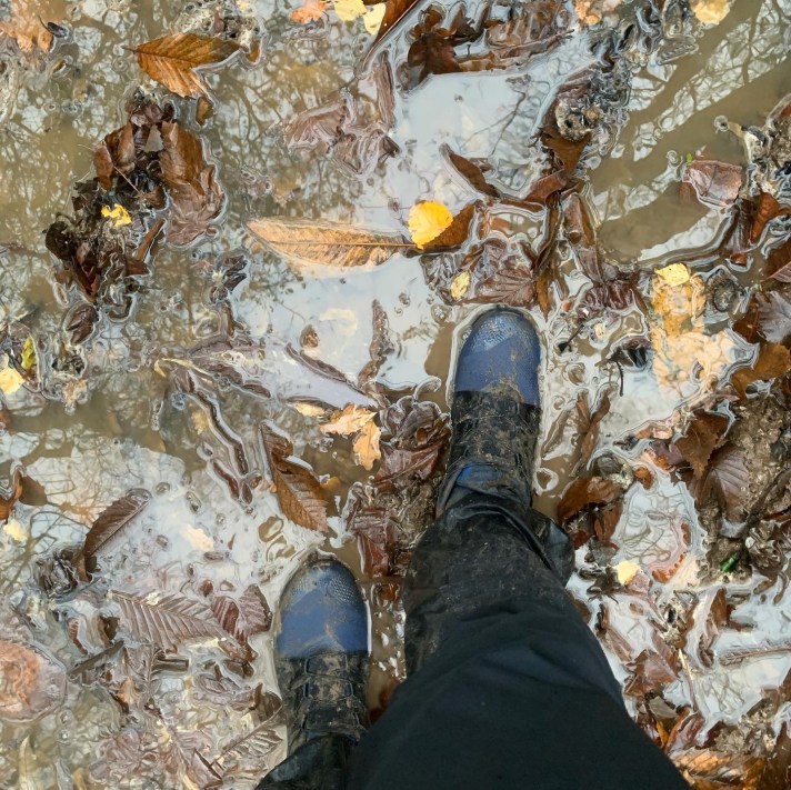 I decided to take the plunge and ordered a pair. I also bought some inov8 merino socks to try. The warmth/wicking combo seemed like a good idea. After a couple of short runs to test them out, what I needed was a long wet run…