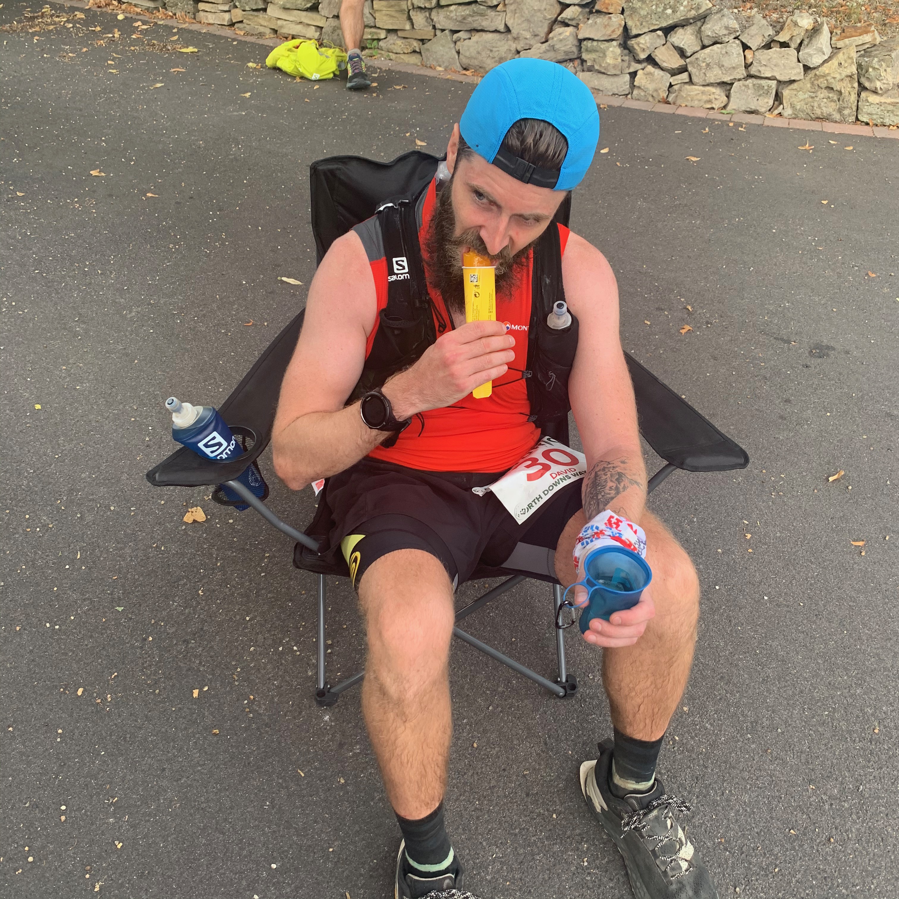 With some restrictions lifted, some races were about to go ahead, and my friend Dai had found himself entered into the North Downs way 100. Having experience of racing the first half and pacing most of the 2nd half in 2019 I had offered my help along with Nick to crew and pace him. This was before my injury, so in the lead up we kept it a little fluid as to what I could do. With the worst-case scenario being I drive and crew, while Nick does some pacing in the night section. In the couple of days leading up to the race I managed to get some walk/runs in along with Stair machine session with no pain. So I agreed to do 10 miles and Nick would do the last 20. Come race day though, it was super hot, in fact the hottest day of the year I think, at 35c! Not ideal for anyone, let alone someone running 100 miles. We decided to meet Dai in Otford with Calipos and some moral support to see how he was. When we saw him hiking up the station road, he didn’t look in a great way, so we introduced him to “the chair” and the icy pops! This made him very happy, then after some encouragement sent him on his way. It was at this point I said to Nick that I would run the first 20 miles of the remaining 40, then he could do the run in with him. We both agreed this would be a good idea. I was worried about my calf a little but hey, you got to do these things for your friends right. I also really enjoy the night running now and definitely think it help him.. I wont go into all the details of this race as you can read about it in Dai’s blog here. We had quite a fun night and he finished the race mid morning, which is amazing as it had really high DNF numbers. Also, my calf played ball, which was perfect timing for the next adventure.