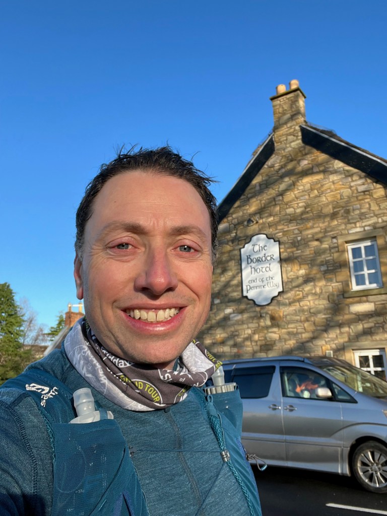 As we continued driving we immediately made a plan to do some kind of run on the Cheviots the next day. The house was paid for, we were pretty much there, we might as well use this as some kind of recce/kit test. Dai started looking at routes and came across one from a local trail marathon that had been held just two weeks earlier. 45km starting and finishing right outside our front door. Later on we worked on extending it to 52km as I suggested we pop over the border to Scotland to visit the end of the Pennine way at Kick Yetholm. This would bring the route up to a punchy 2000m+ and give us a wild but safe ish experience. We couldn’t really do the remote parts of the course unsupported and get that kind of distance in. We also really wanted to go up The Cheviot, the highest point in the fells here at 815m. Paul was staying at a hotel not too far away and was up for a little adventure too! The new course was named “The Cheviot Mutton” it was ours to take on and enjoy.