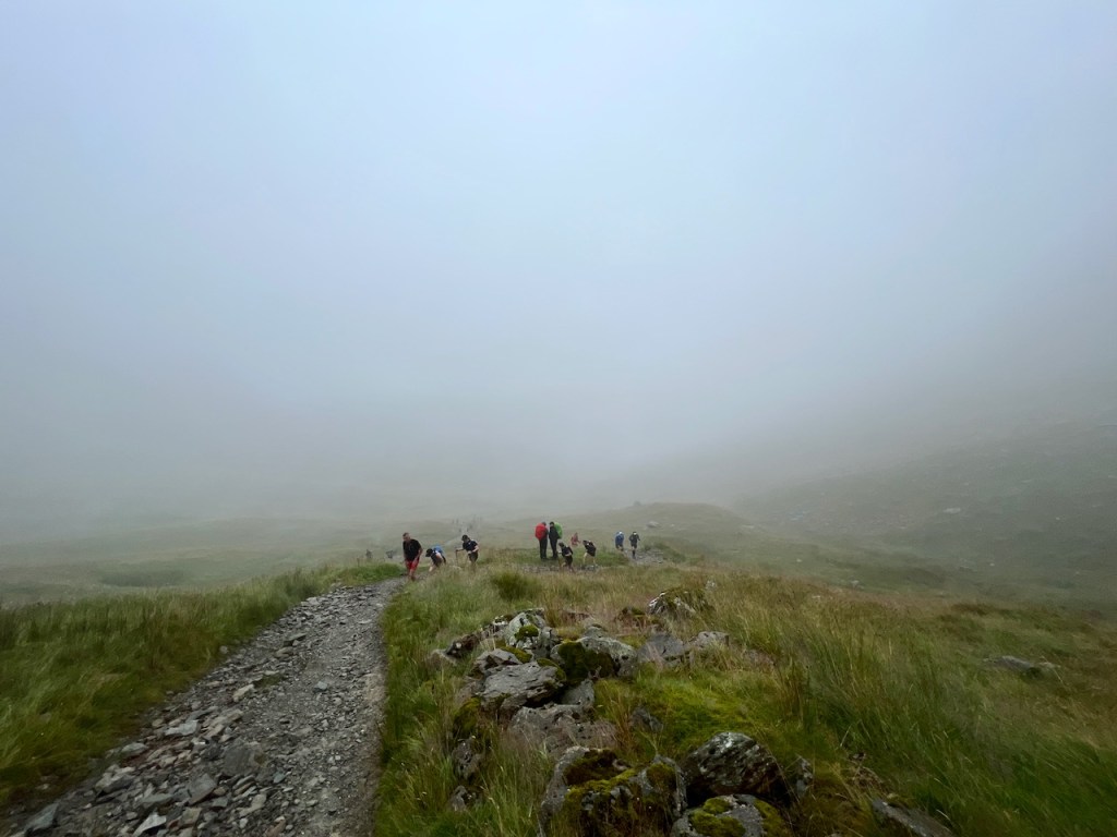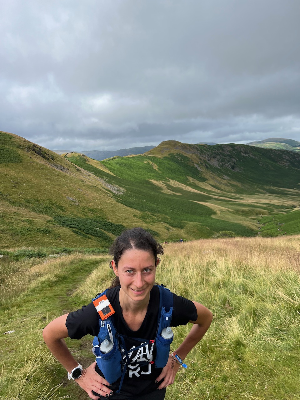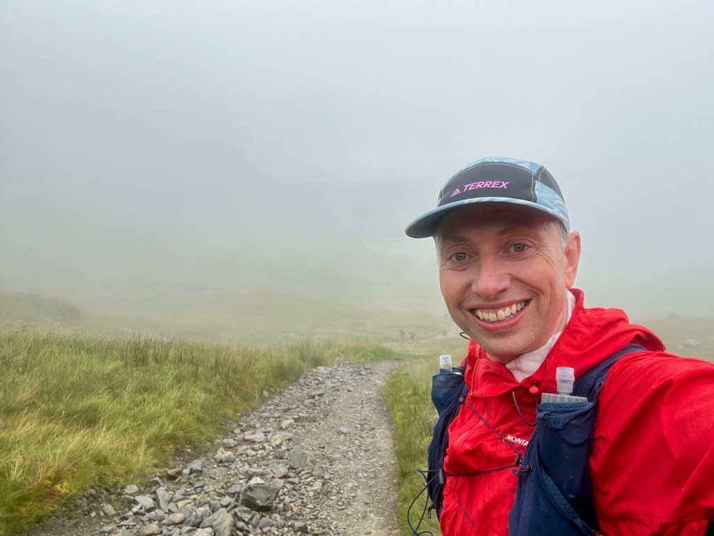 In no time though, we were rounding the end of the lake and coming into the CP. it was busy but full of good vibes and helpful volunteers. After a quick toilet stop, I put my WP jacket back on as I was starting to get cold and knew there was another longish climb coming. I then refilling my bottles, ate some watermelon and something else I can’t remember lol. Just before leaving I saw Rach and her friend come in, followed by Alexandra. Nice to check with people on the fells.
