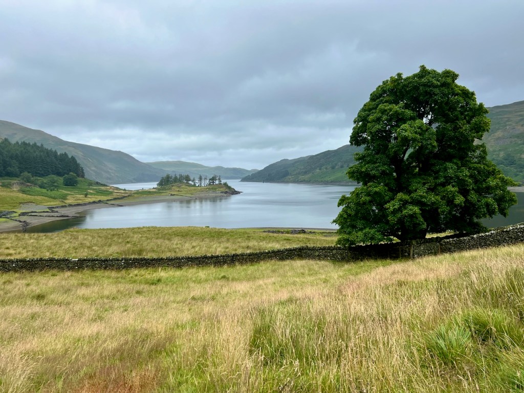 I was soon descending a rather lush path where I caught up with Ally and Andy again. We were heading down to Haweswater Reservoir though. This next section was one I was dreading and it lived up to its notoriety. A slightly flat, rolling, rocky fern filled path around the lake but about 20m up. Basically it wasn’t fun, and to make it less fun, it started raining. It wouldn’t really stop until we almost finished also! The rain was hard, then light, then hard etc. Ally and I got in a bit of a grump and the flowing chat pretty much stopped. I was still thinking about Reka and hoping she was ok but I also wanted to get to the CP. in hindsight I wasn’t fuelling properly at this point and should have eaten something but the rain combined with it being a bit humid and the rocks was distracting my mind for what I should be doing.