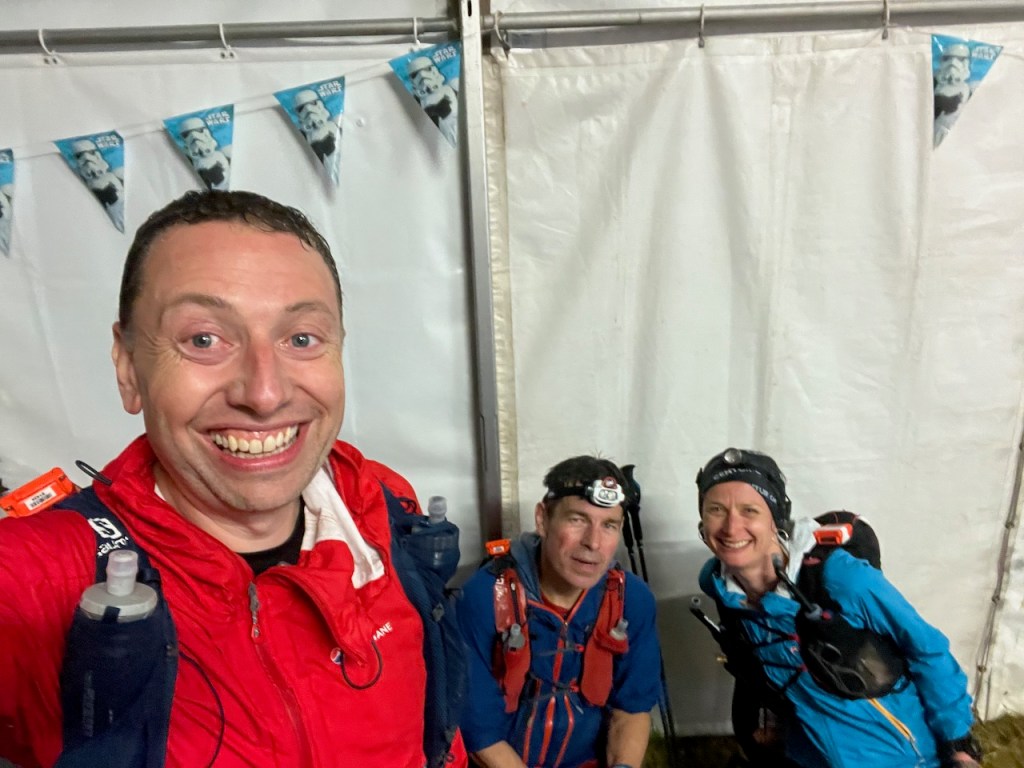 I followed the standard routine apart from getting out the head torch. For this race I was testing out a newish torch, the Petal Nao+, which I bought for use in the mountains but had only worn for like 1 hour in my local woods Running for 4 or so hours with it would be a good test of fit and making sure I understood the set up. I grabbed some more crisps and sweets and drank some squash, then we headed out.