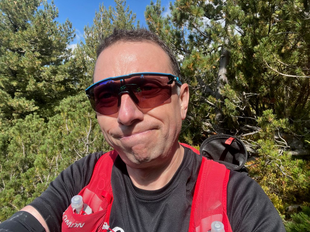 1400m over 8km with an average gradient of 17%, this was a real shit show at times. The first part to the aid station was, again straight up in between some trees following a power line. It was very similar to a certain pipeline climb in Madeira but without the steps. It was energy sapping and a little boring to be honest. I was so relieved when the CP popped up. I had run out of liquid on the climb so I took a few mins to get a little extra water in and fill up 3 bottles for the next section as even though it was shorter, I just didn’t want to be caught short again.