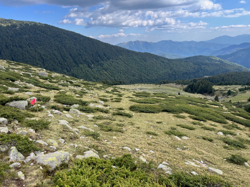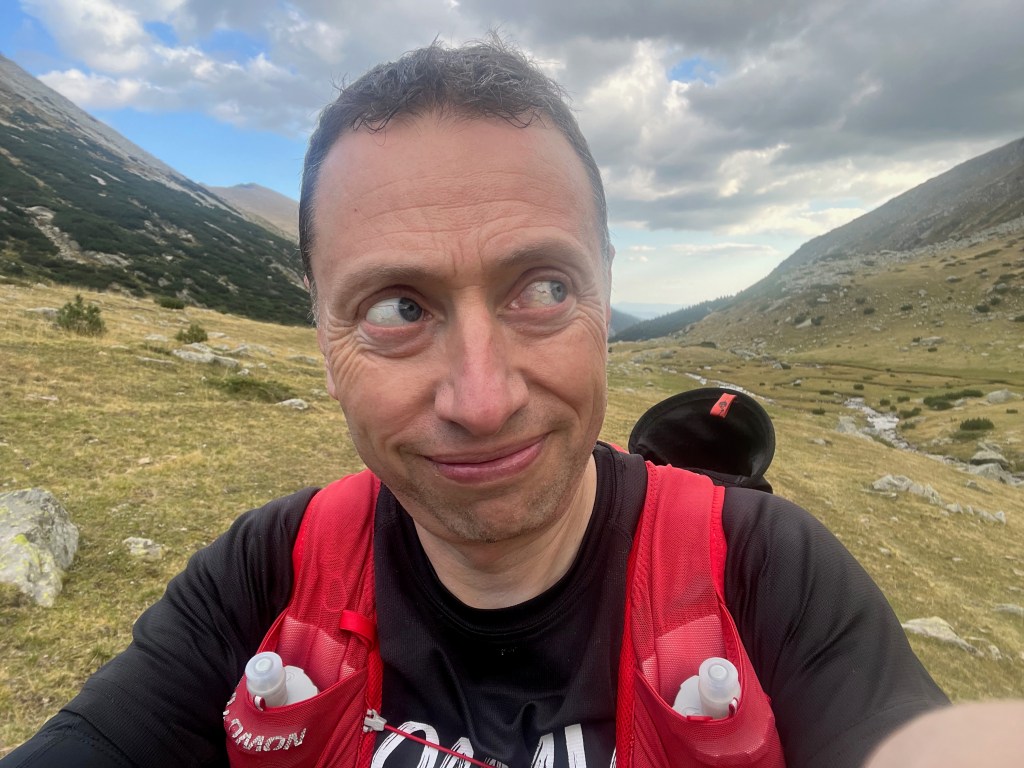That was it, although they did seem to all have toilets as were at mountain huts, which was a bonus. When I came out said here toilet I saw Carl (one of our group) come in. He was looking super fresh. I said I would see him soon as he was looking better than me at this point. I left the aid station and started the next section of the climb. We came out of the trees into the high bushes, which seem to be the fauna of Bulgaria, these bushes are about head height on me so it still feels enclosed but just different. The climb was, you guessed it, pretty much straight up again. It was hard work and I wasn’t that happy at this point as there were no views and of course Carl over took me. I wished him well and just continued moving, always move.